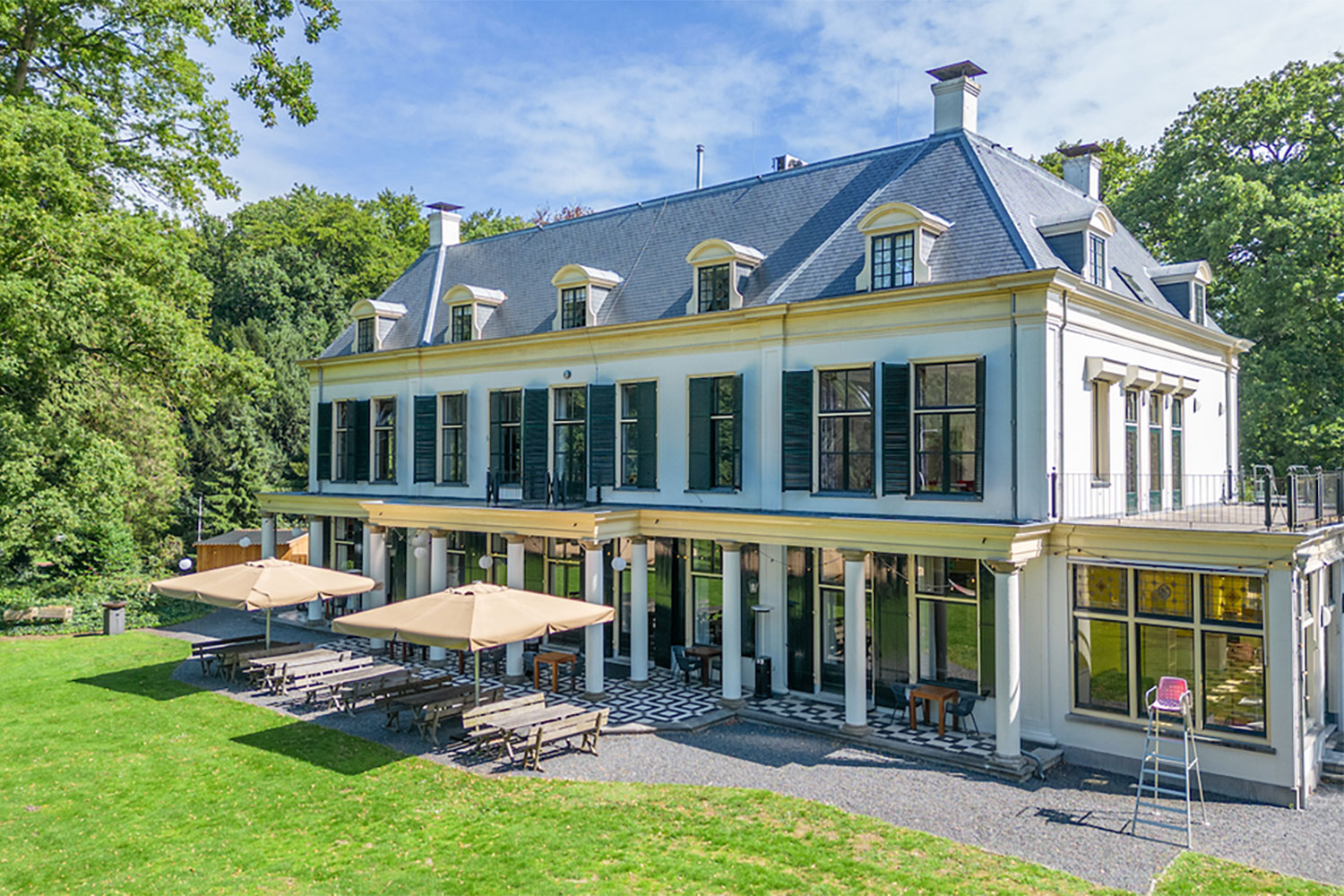 Het landhuis van de Baak in Driebergen ligt midden in het groen. Ideaal voor als je tijdens de pauze een frisse neus te halen of een goed gesprek wilt voeren met een andere cursist.